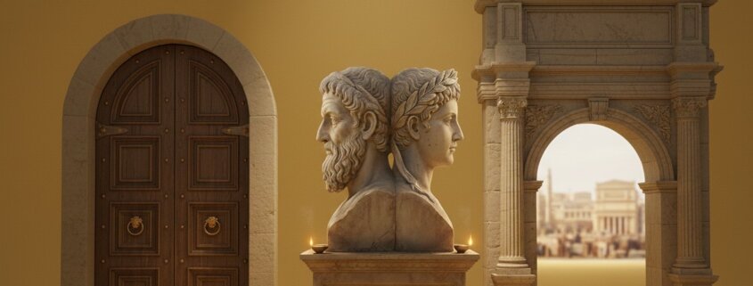 Aan het eind van het jaar keken de Romeinen terug én vooruit. Dat deden ze onder leiding van Janus, de god van begin en einde. Met twee gezichten keek hij naar het verleden en naar wat nog zou komen. Hij waakte over deuren, poorten en momenten van overgang.