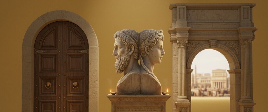 Aan het eind van het jaar keken de Romeinen terug én vooruit. Dat deden ze onder leiding van Janus, de god van begin en einde. Met twee gezichten keek hij naar het verleden en naar wat nog zou komen. Hij waakte over deuren, poorten en momenten van overgang.
